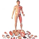 この高品質実物大モデルは多種多様な解剖学的構造を最も正確に詳細に再現しており医療系専門学校や大学等の高いレベルの教育に特に適しています。右半身は皮膚を左半身は浅・深層筋神経血管及び骨の構造を表しています。多機能性と学術的な正確さが美しいデザインに包まれています。次のパーツを取り外せます。