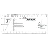 ①心電図のR波の1つに↑矢印を合せると、4つ目のR波で1分間の心拍数が分かります。 除脈の場合や変動を測る場合には、2つ目のR波で赤色の表示を読んで下さい。(ペーパースピード25㎜/sec) ②STの変化を計測します。 基線(T-P間の平坦部又はQ波の直前を結ぶ線)を0の点線に合わせて、STの偏位を計測します。 基線(ST)が変動(斜め)になったときなど、便利に御使用いただけます。 ③R/Sの目盛りは、R波・S波の高さの測定に使用します。 ④QTインターバル(QTc) 左の垂直線にR波(Q波)の始まりを揃え、次のR波の始まりが、右側の斜線に合うようスケールを上下します。 合ったところでQT波の終わりが、中央の点線の左側に納まっていればQTcの延長はありません。 RR1.0の横線を入れました(平行が分かり易くしました) QTcの計算公式を表示しました。